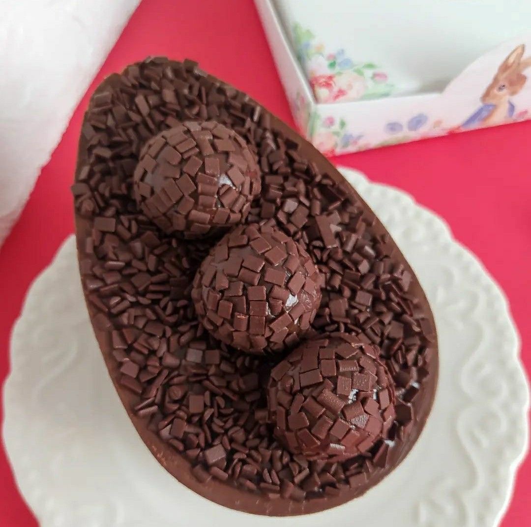 Chegou bem rápido e o ovo estava muito bem feito e bem recheado, melhor que Cacau Show!